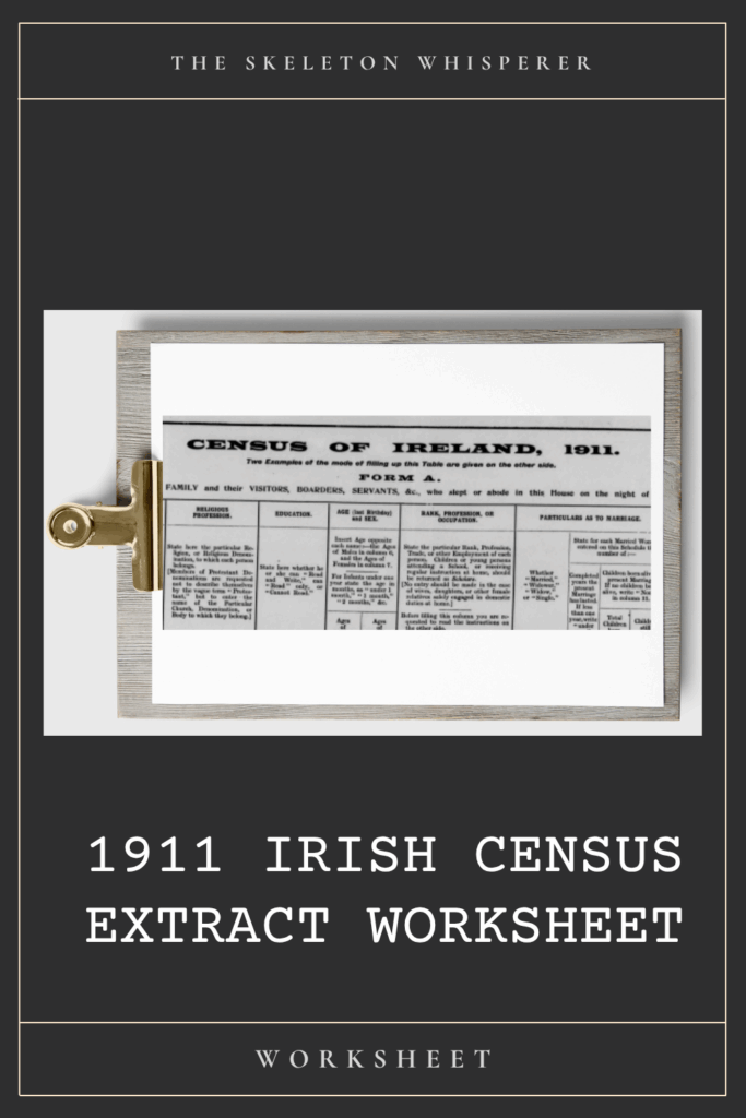 1911 Irish Census Extract Worksheet Guides and Worksheets, Sleuther's HQ 1911 Irish Census Extract Worksheet Read More »